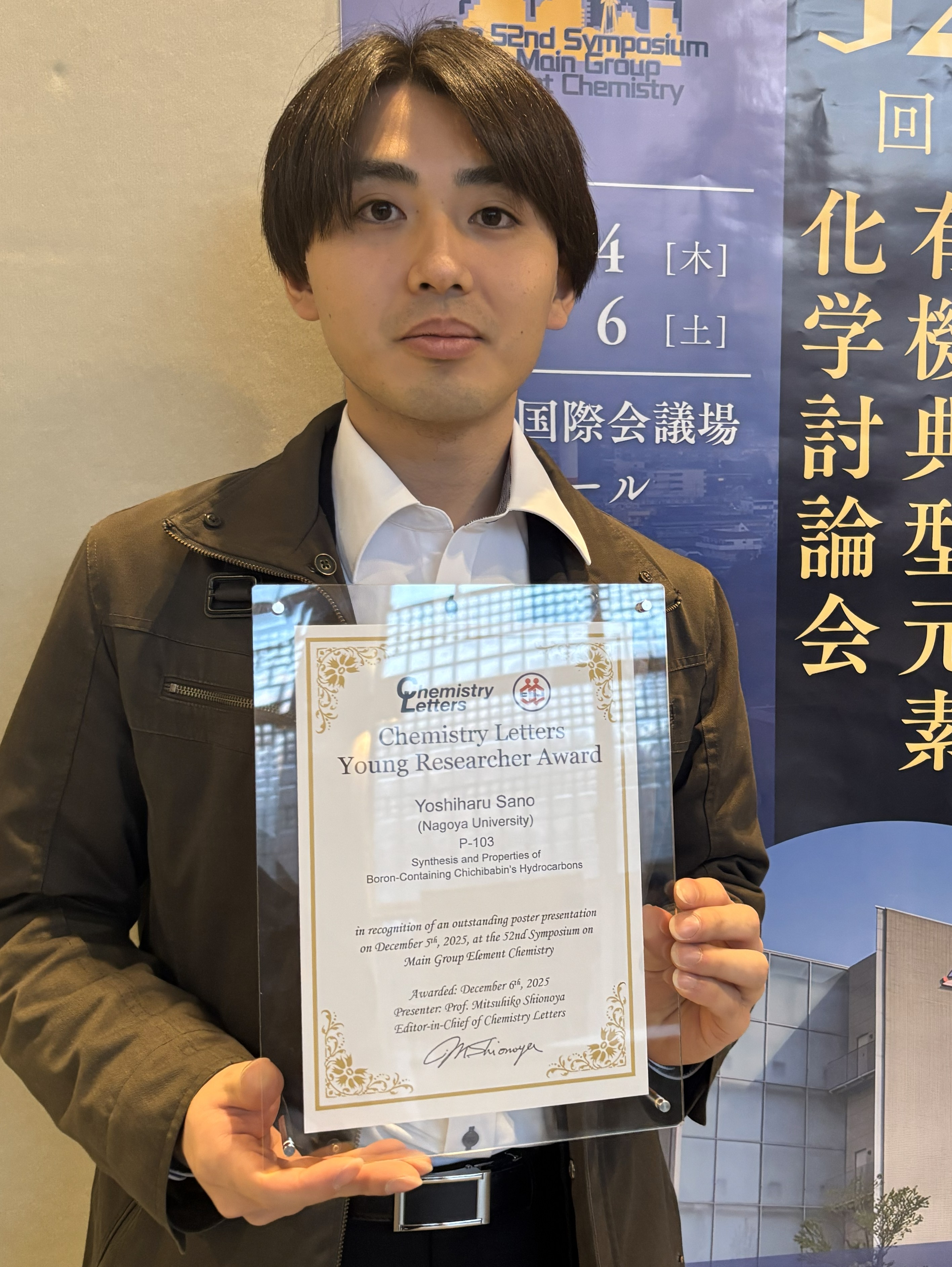佐野くん(M2)が第52回有機典型元素化学討論会でポスター賞を受賞しました!